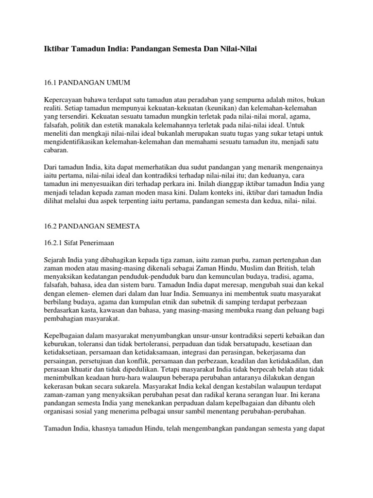 Doc Thursday Iktibar Tamadun India Pandangan Semesta Dan Nilai Nilai Pandangan Umum Joanna David Academia Edu