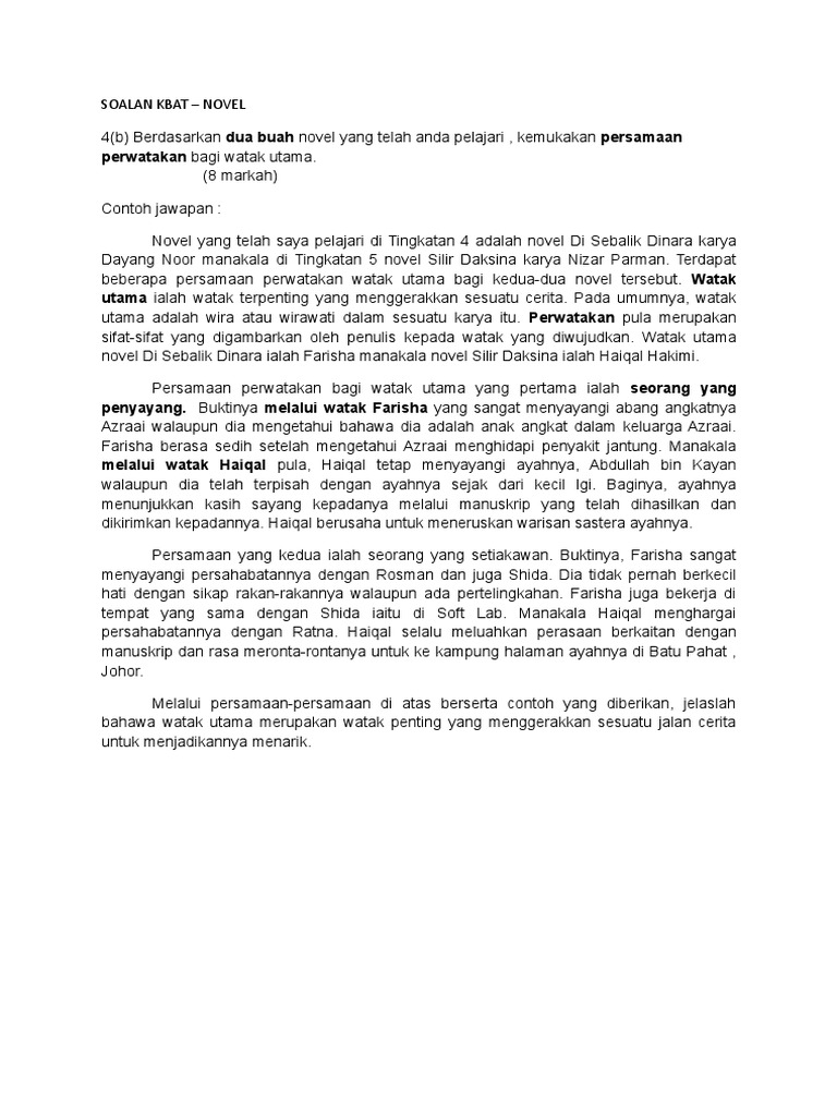 Contoh Jawapan Novel Tingkatan 4
