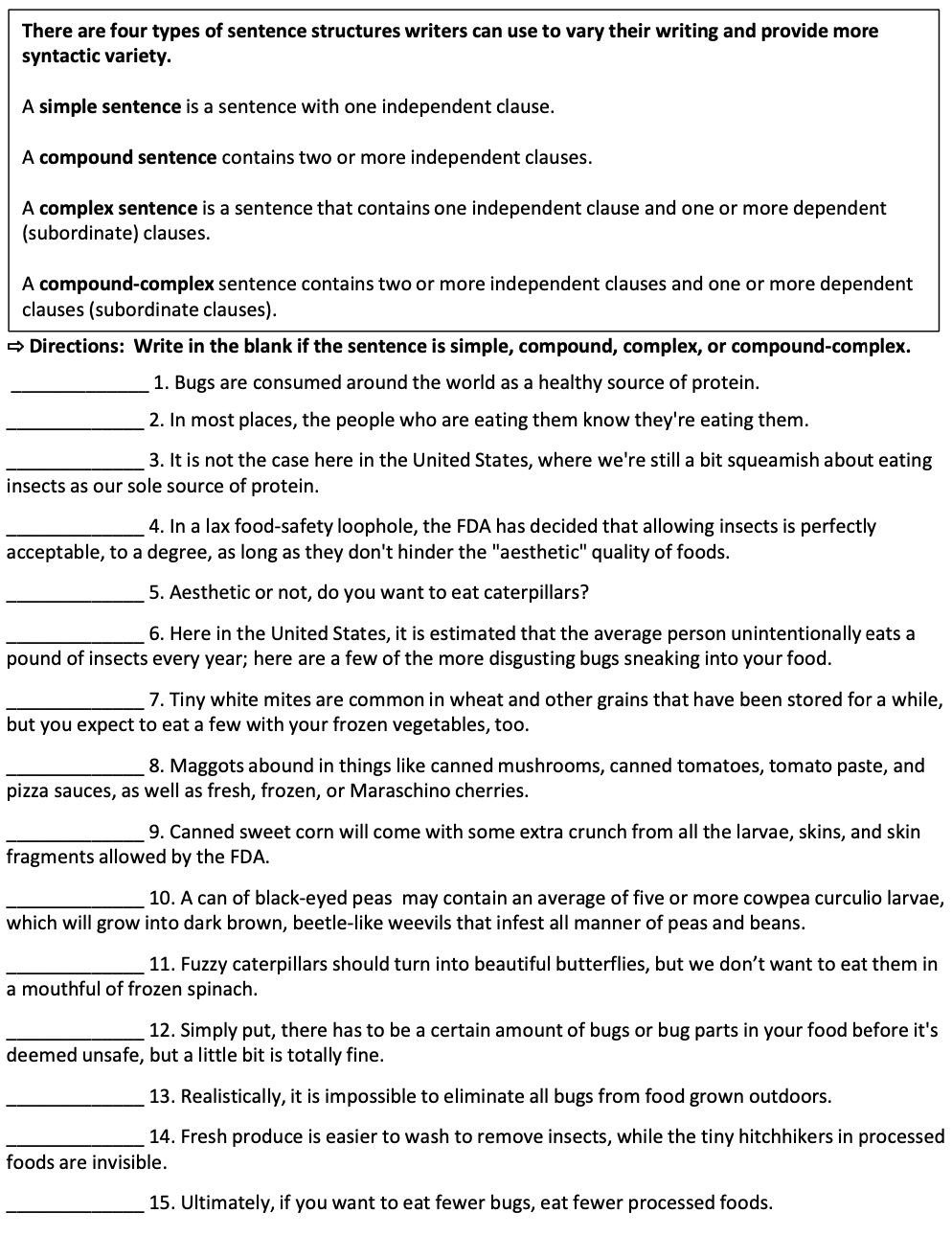 There Are Four Types Of Sentence Structures Writer Chegg Com