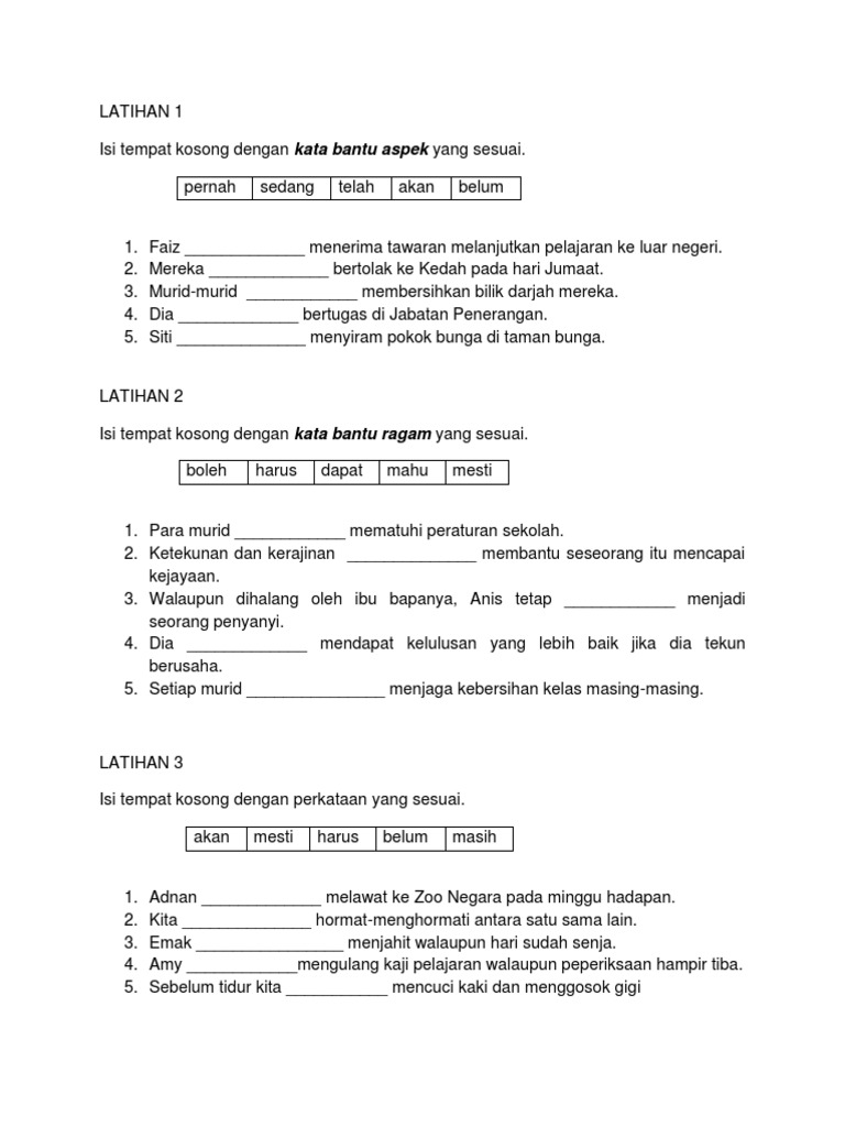 Soalan Dan Jawapan Tatabahasa Tingkatan 3 Kata Bantu