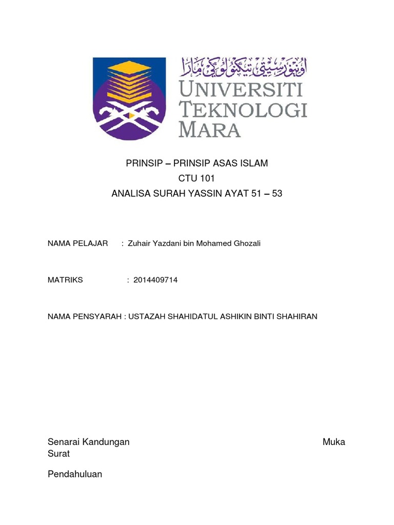 Assaignment Surah Yassin Ctu Ayat 1 20