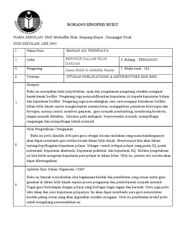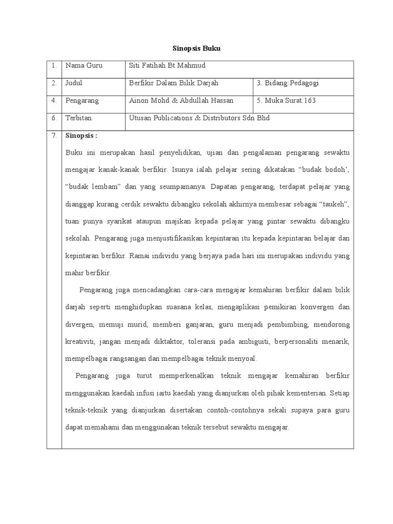 Buku Berfikir Dalam Bilik Darjah Ainon Mohd Abdullah Hasan