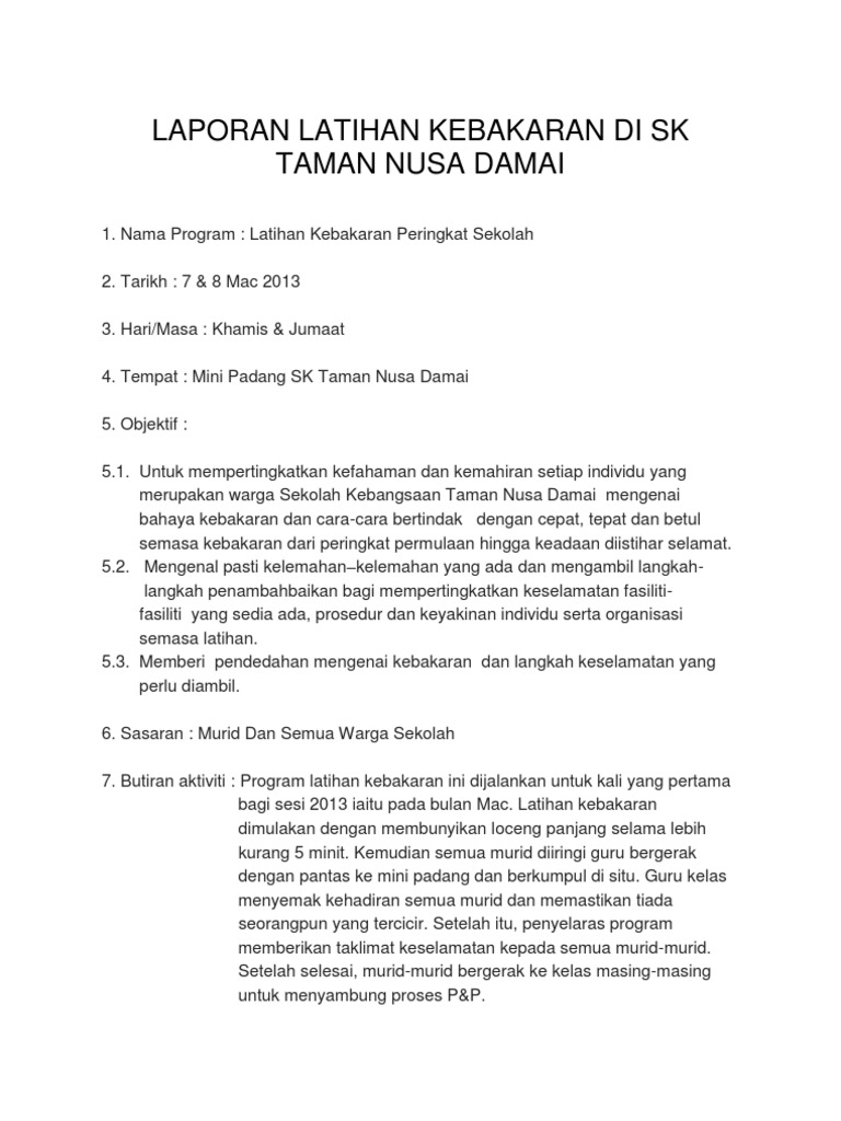 Laporan Latihan Kebakaran Di Sk Taman Nusa Damai