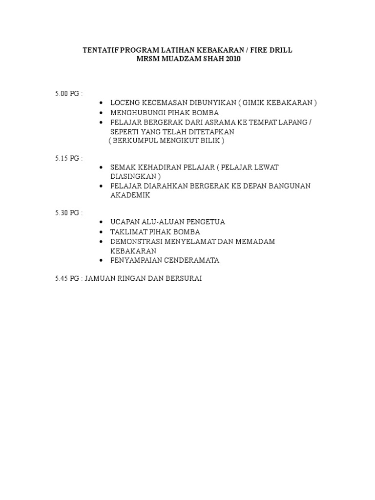 Tentatif Program Latihan Kebakaran