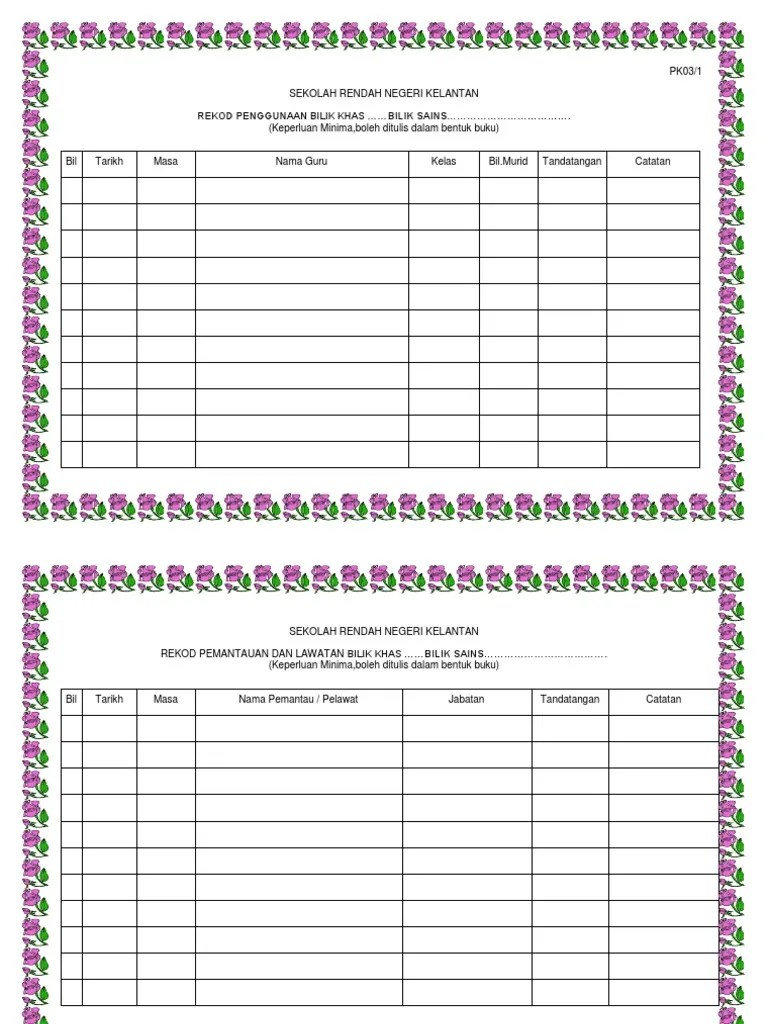 Lampiran Pk03 1 Rekod Penggunaan Bilik Khas