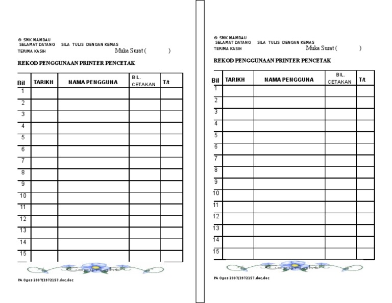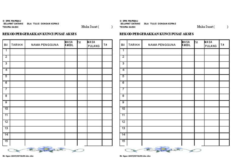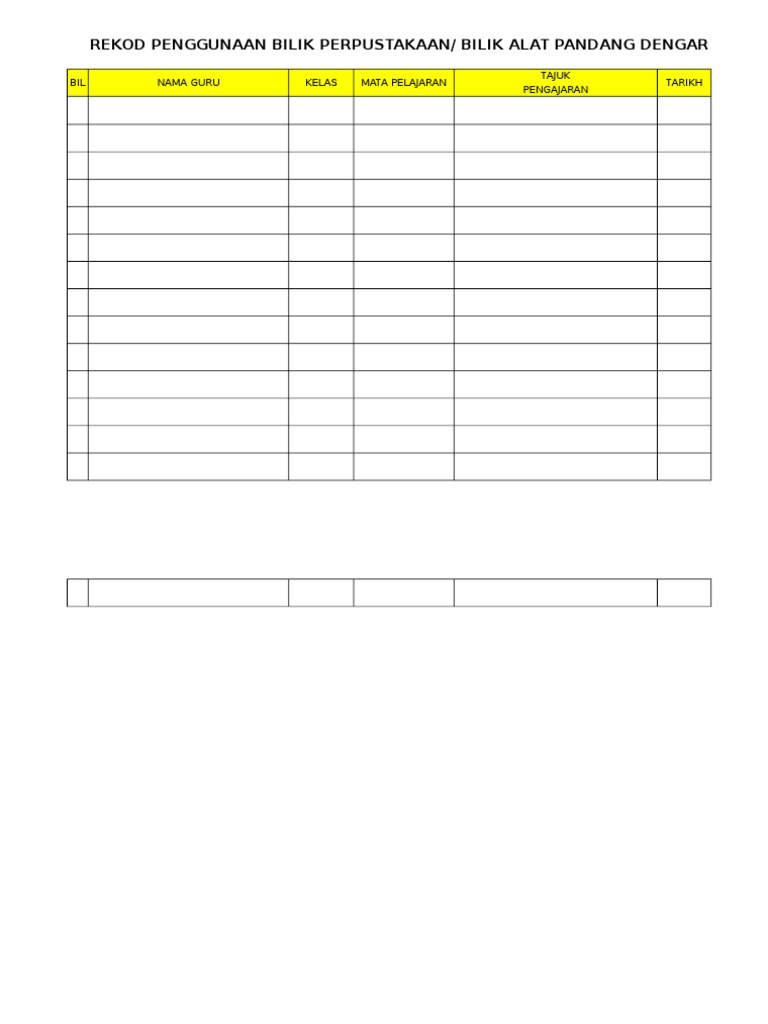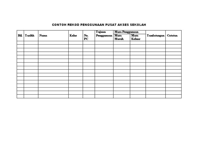 Contoh Rekod Penggunaan Pusat Akses Sekolah