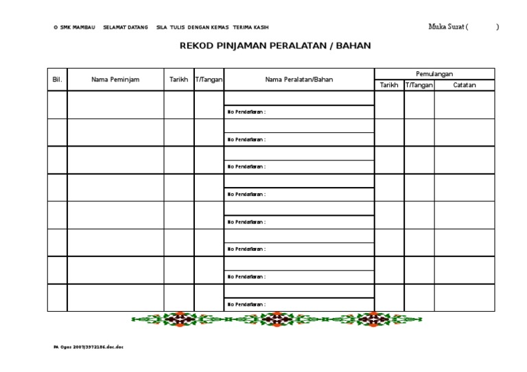 Pusat Akses Cover Rekod Tempahan Penggunaan Pusat Akses Buku Log Mus225 Pdf Document