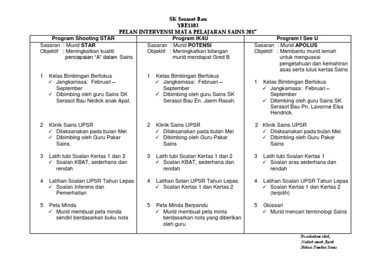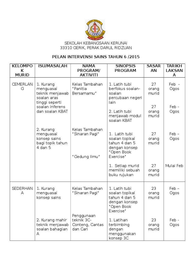 Pelan Intervensi Mata Pelajaran Sains 2017