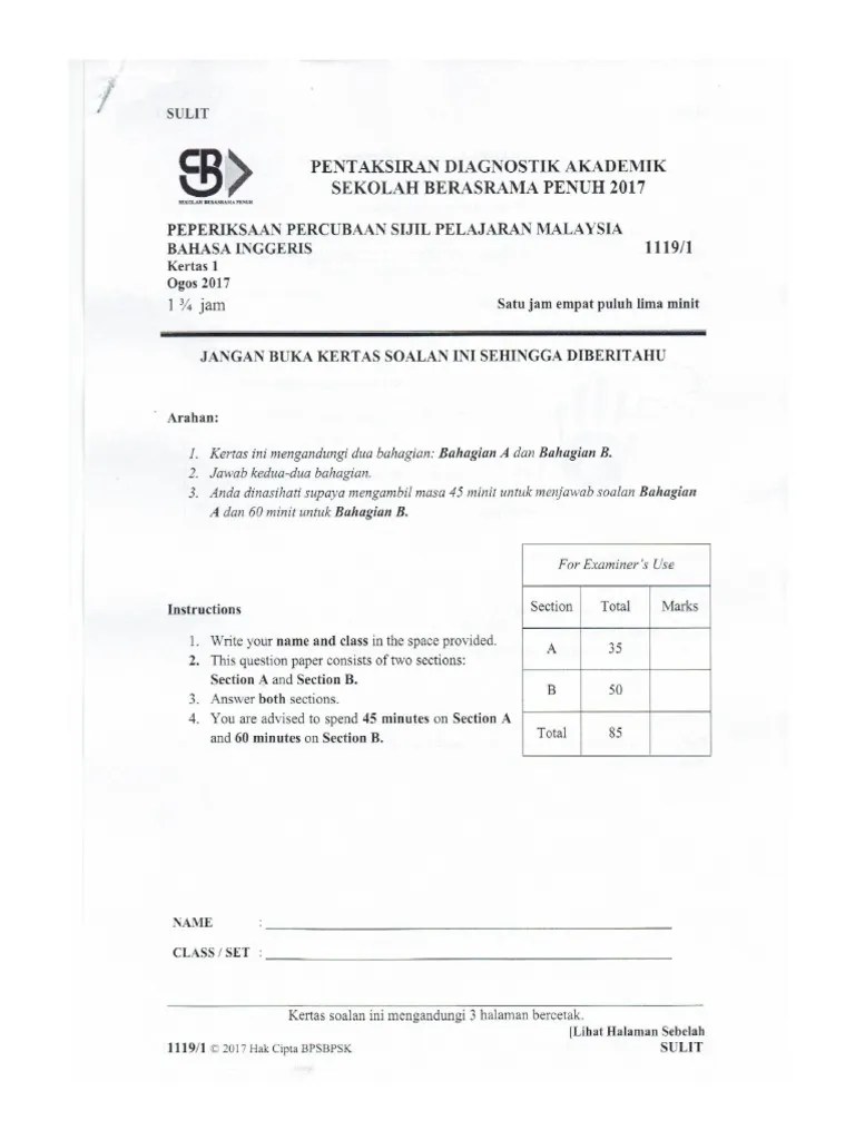 Bahasa Inggeris Spm Sbp Trial 2017 Paper 1 Cute766