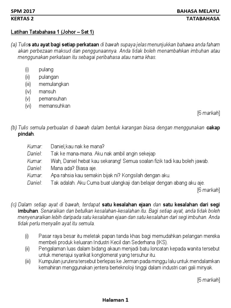 6 Koleksi Soalan Tatabahasa Percubaan Spm 2017 Se Malaysia Docx Spm 2017 Kertas 2 Bahasa Melayu Tatabahasa Latihan Tatabahasa 1 Johor U2013 Set 1 A Course Hero