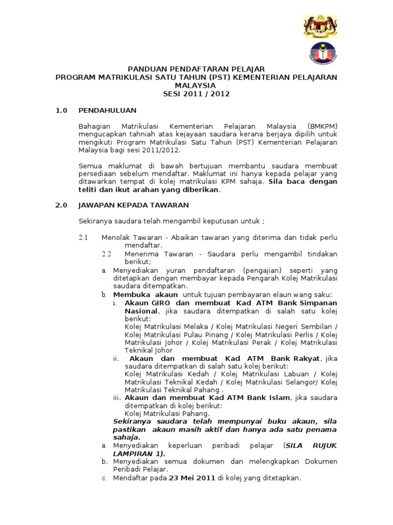 Panduan Pendaftaran Program Satu Tahun Matrikulasi 2009 By Rizal Nawi Issuu