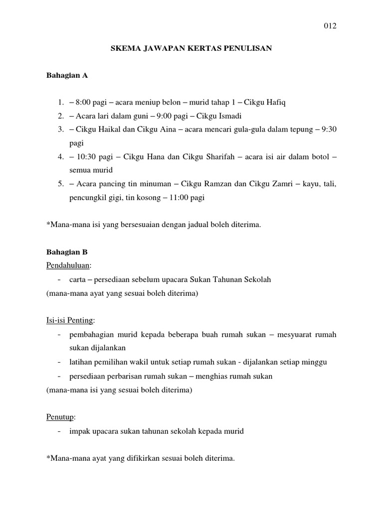 Skema Jawapan Kertas Penulisan