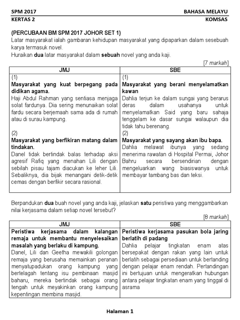 Skema Kertas 2 Bm Percubaan Sbp 2017