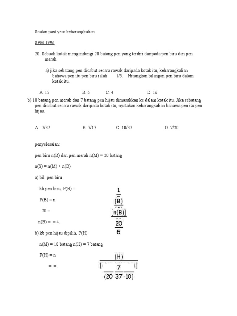 Contoh Soalan Kebarangkalian Matematik Tingkatan 4 Tersoal N