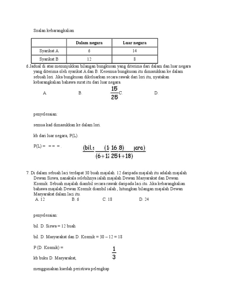 Contoh Soalan Kebarangkalian Dan Jawapan