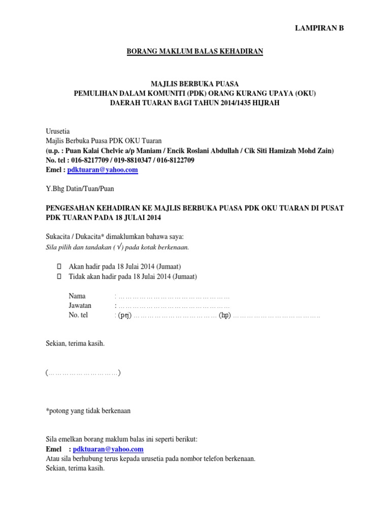 Contoh Surat Jawapan Kehadiran