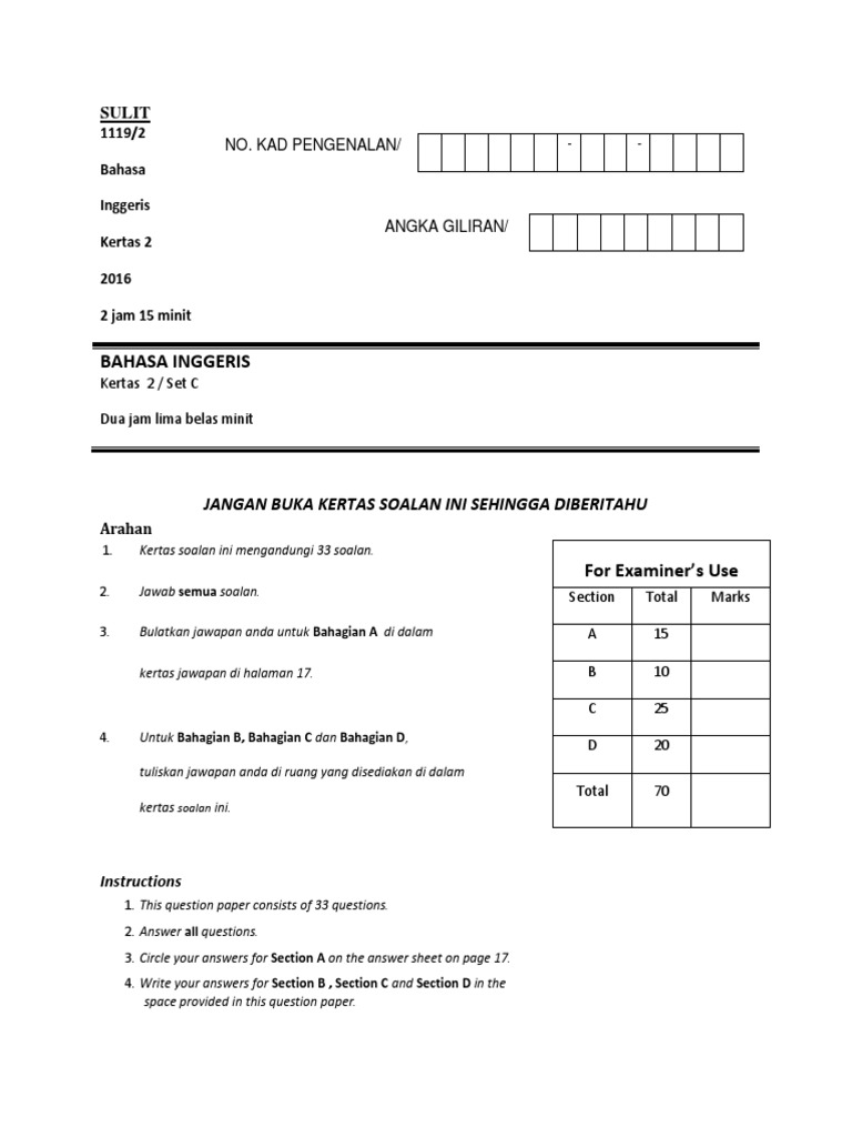 Soalan Sebenar Spm 2019 Bahasa Inggeris Selangor A