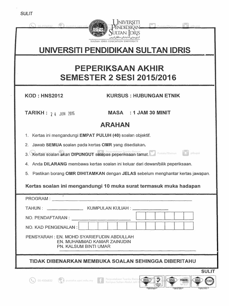 Soalan Dan Jawapan Hubungan Etnik Kuiz Past Year