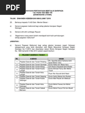 Jawapan Bagi 10 Soalan Bertulis Persidangan Penggal Pertama Dewan Negeri Selangor Ke 13
