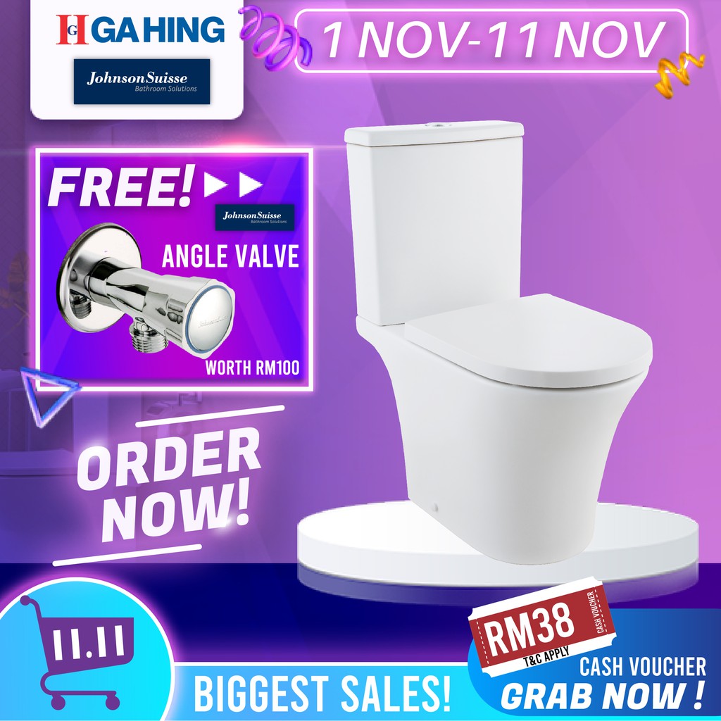Johnson Suisse Vicenza Close Coupled Toilet Bowl Rimless Water Closet Set S Trap Bo 200mm 250mm Jamban Tandas Ga Hing Shopee Singapore