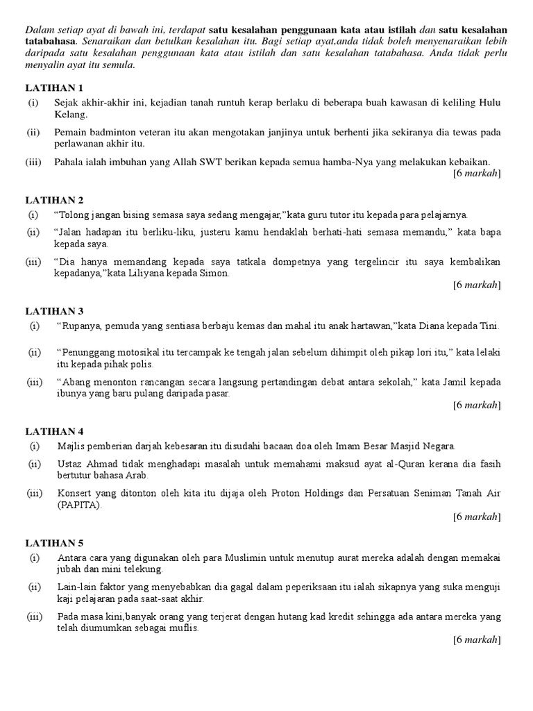 B5 Latihan Kesalahan Kata Istilah Dan Tatabahasa