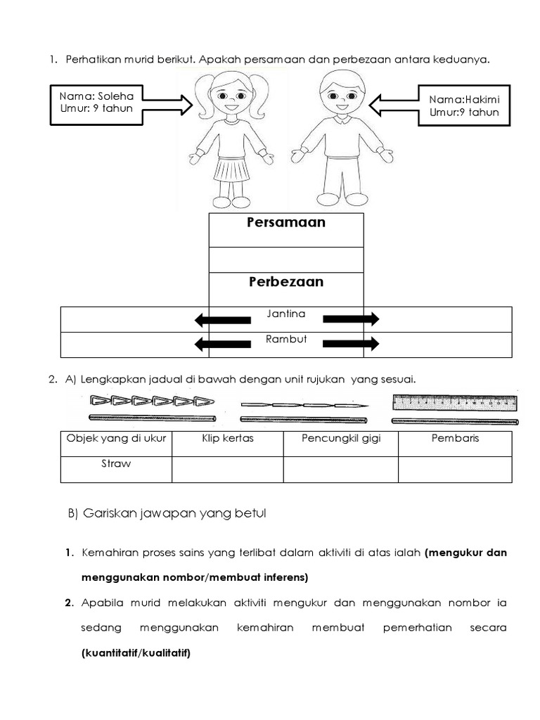 Latihan Sains Tahun 1 Gariskan Jawapan Yang Betul