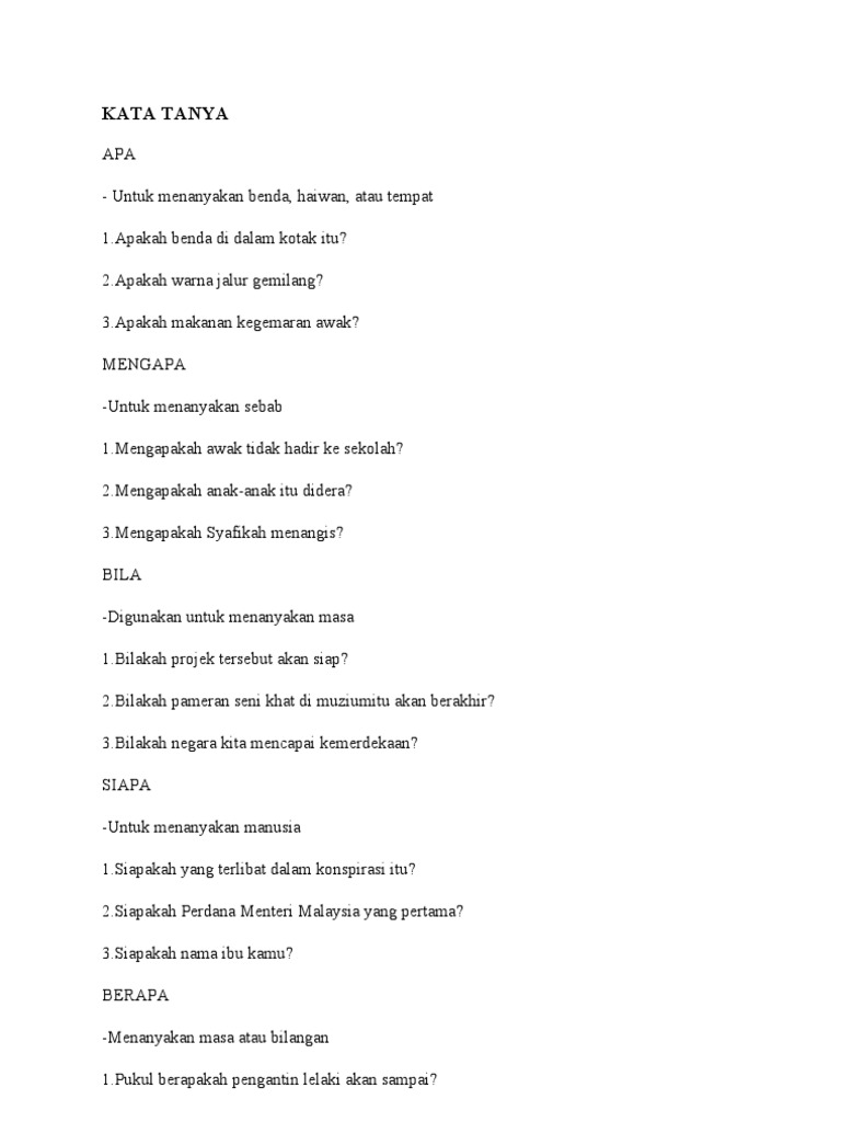 Ayat Tanya Dengan Kata Tanya Sumber Pengajaran