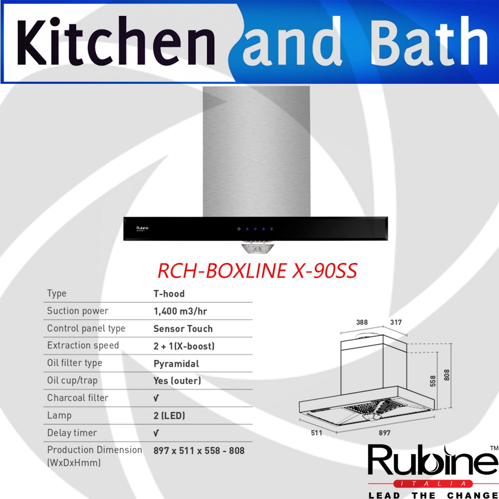 Rubine Cooker Hood Rch Boxline X 90ss Shopee Malaysia