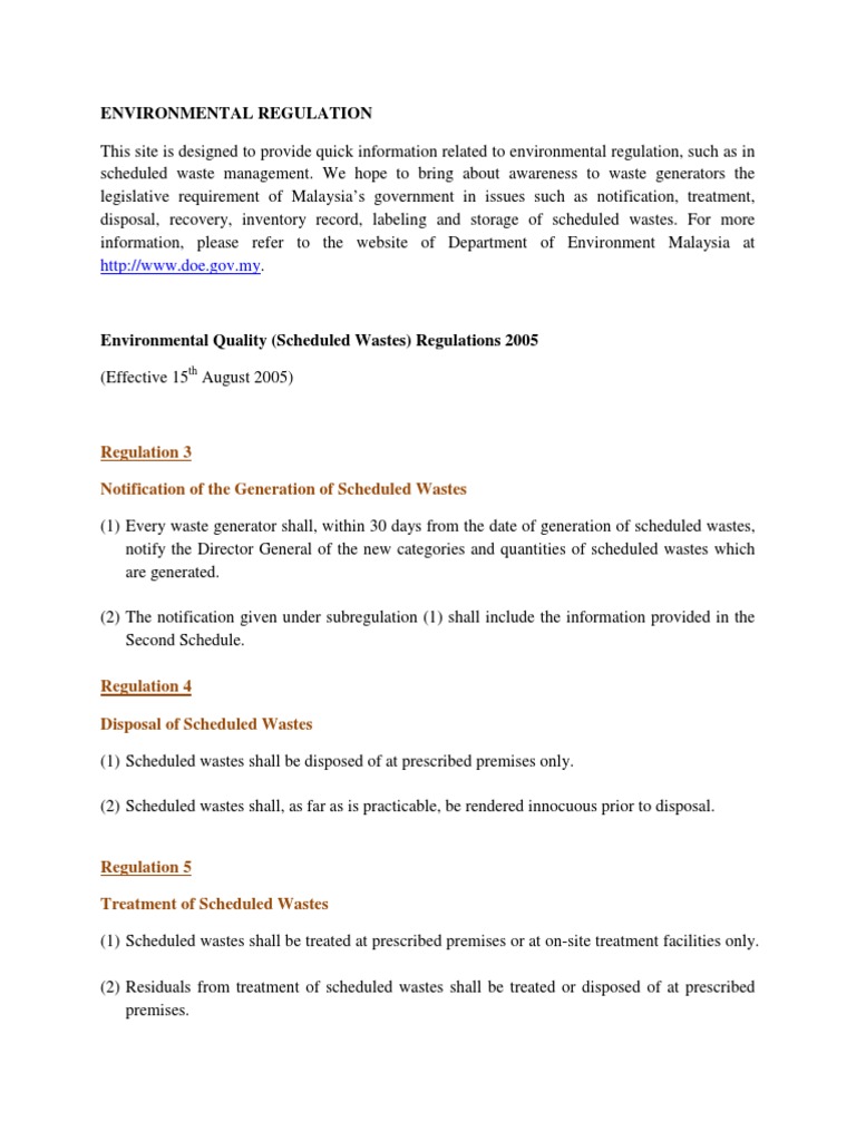 Attachmenttrgr 14g Environmental Quality Scheduled Wastes Regulation 2005 Waste Management Waste