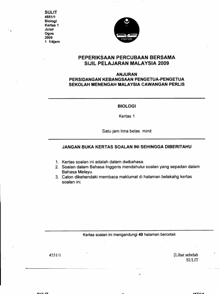 Skema Jawapan Biologi Percubaan Spm 2009 1 Jawapan Biologi Percubaan Spm 2009 1 Structured Question No 1 Item No Suggested Answer S Marks 1 A Organelle X Chloroplast