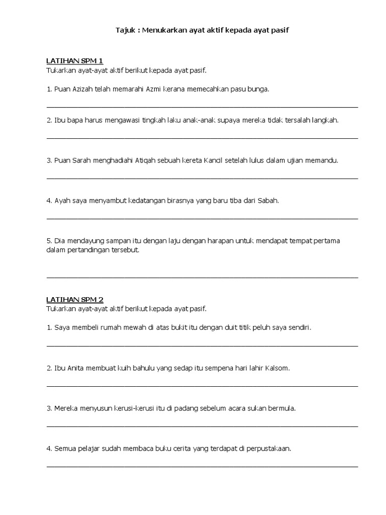 Latihan Ayat Aktif Dan Pasif Page 1 Line 17qq Com