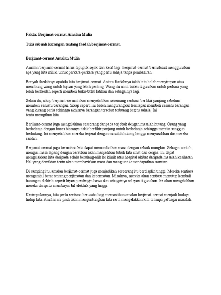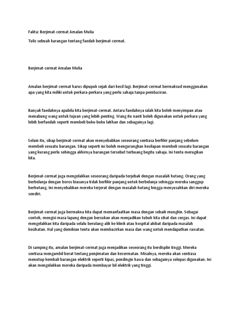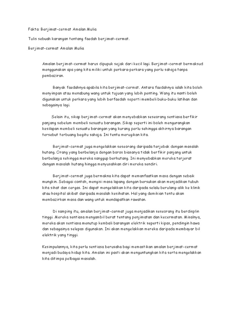 Fakta Berjimat Cermat Amalan Mulia Tulis Sebuah Karangan Tentang Faedah Berjimat Cermat