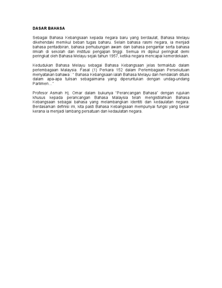 Dasar Bahasa Kebangsaan Dalam Pendidikan Persatuan Linguistik Malaysia