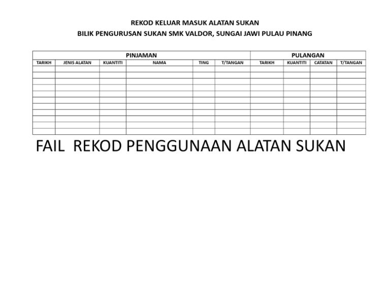 Rekod Keluar Masuk Alatan Sukan Docx