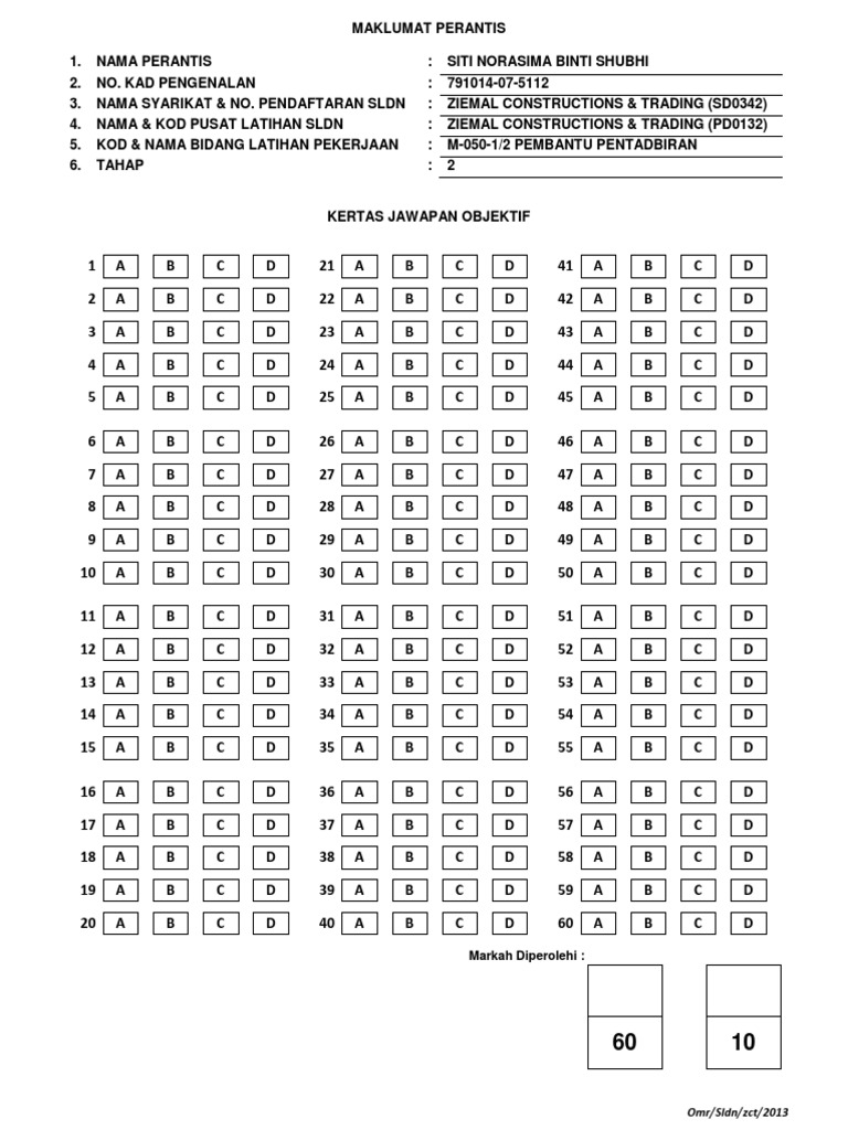 Kertas Jawapan Omr Pmr Pdf Document
