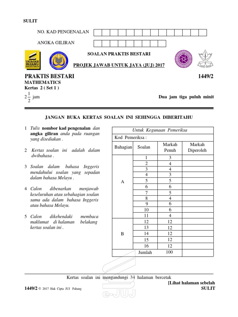 Juj Phg Soalan Matematik Kertas 2 Set 1