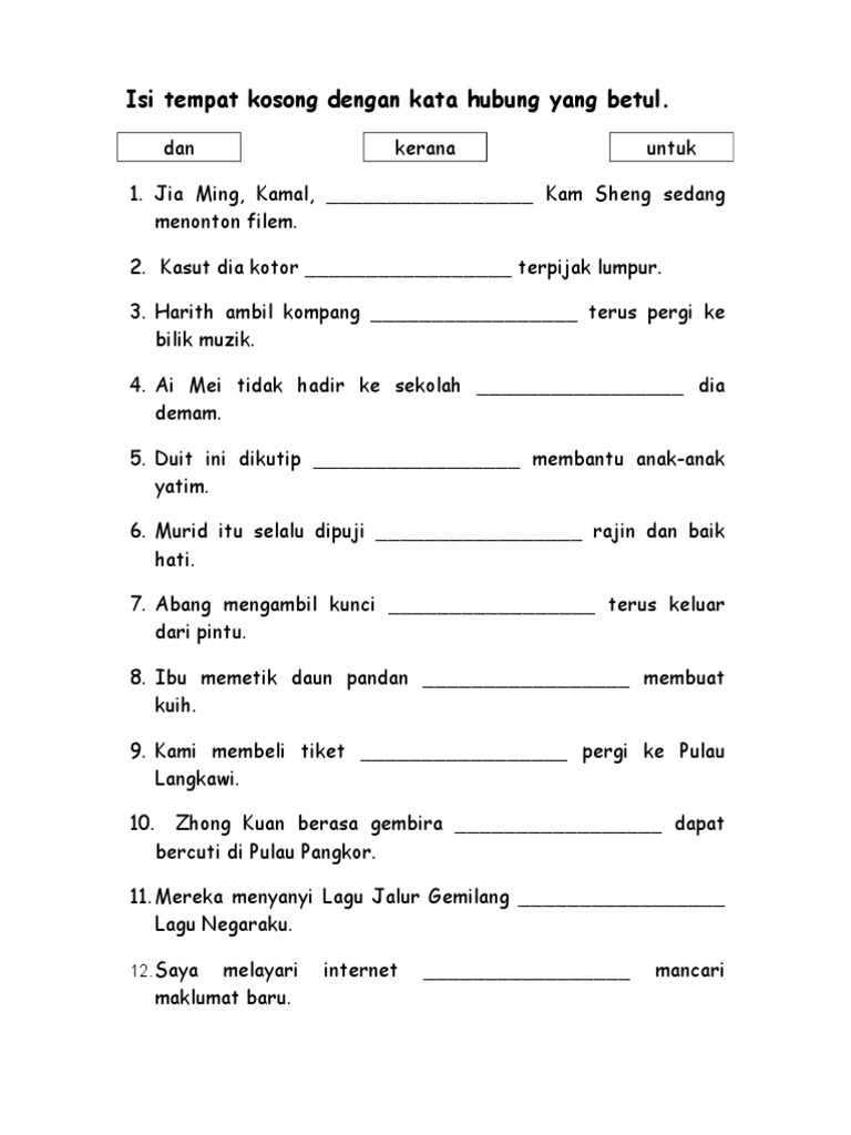 Bahasa Malaysia Tahun 3 Kata Hubung Kindergarten Worksheets Preschool Learning Activities Worksheets For Kids