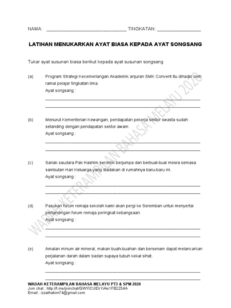 Soalan Latihan Ayat Songsang Spm Latihan Ayat Biasa Dan Ayat Songsang Pt3 Sila Jawab Semua Soalan Ramalan Joni Tanas