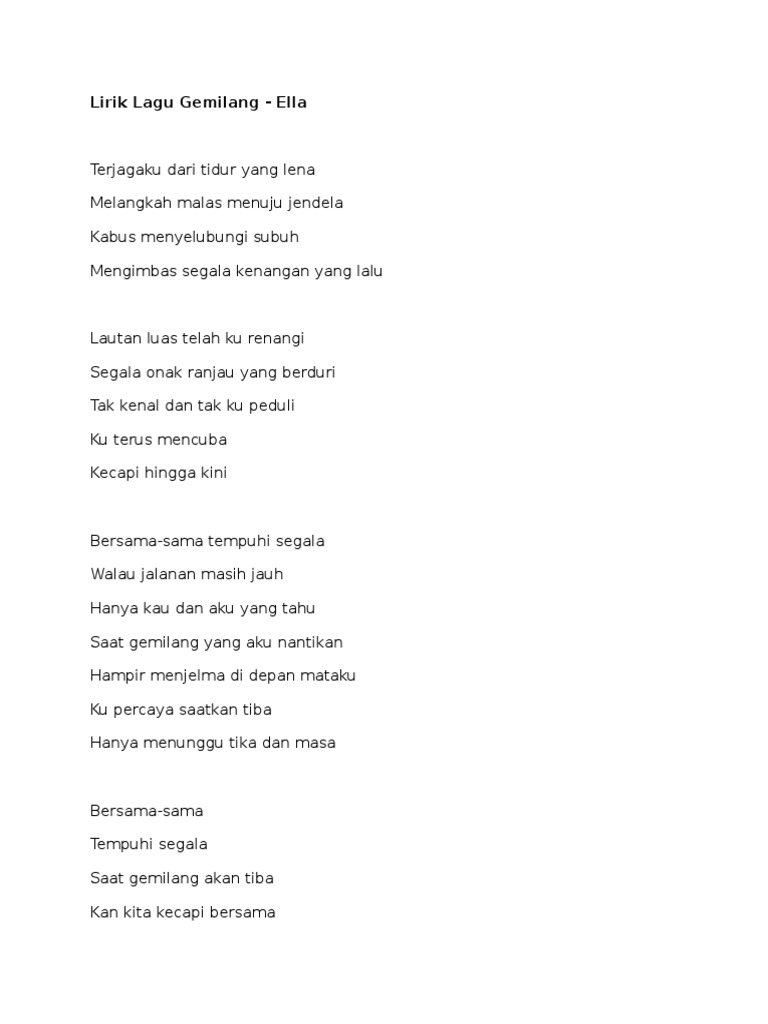 Gemilang Lyrics Ella Kkbox