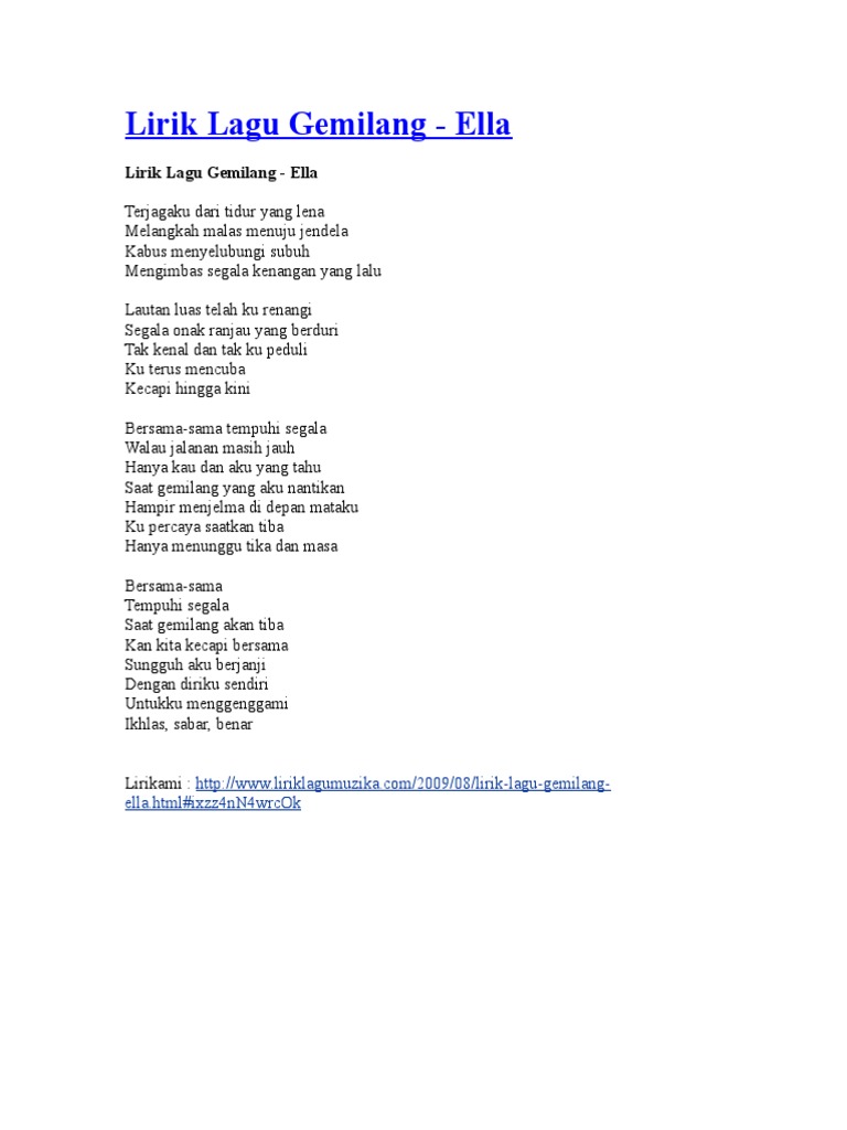 Lirik Gemilang Ella Wmv Youtube