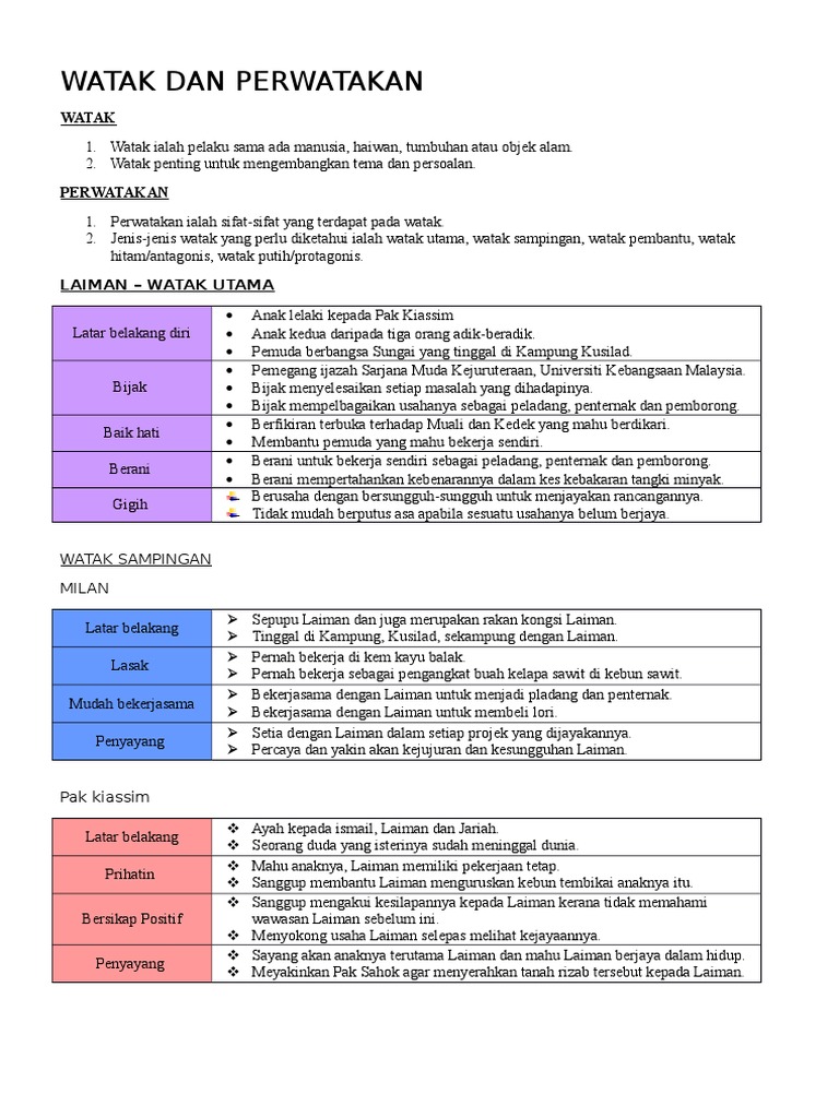 Skema Jawapan Novel Watak Utama Laiman Tingkatan 2
