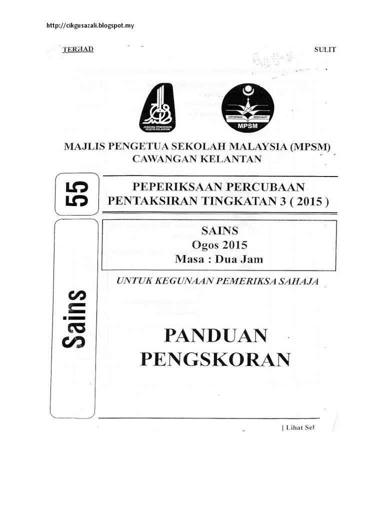 Sains Koleksi Soalan Percubaan Pt3 2015 Jawapan Bumi Gemilang
