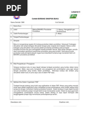 Sinopsis Buku Ladap 2017 Sinopsis Perkembangan Kanak Kanak Lampiran C Borang Sinopsis Buku Nama Sekolah