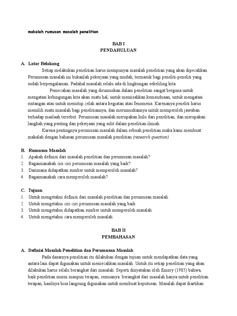 Makalah Rumusan Masalah Penelitian