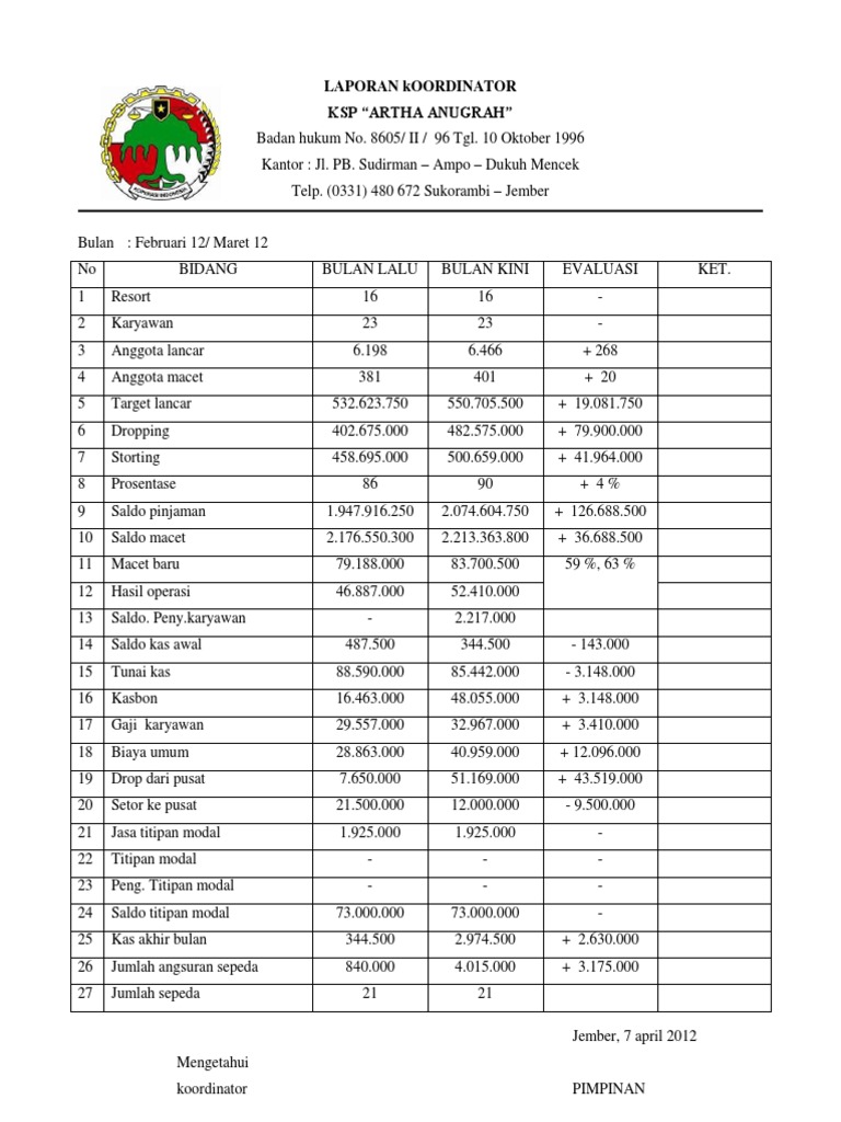 Contoh Laporan Koperasi Simpan Pinjam Seputar Laporan