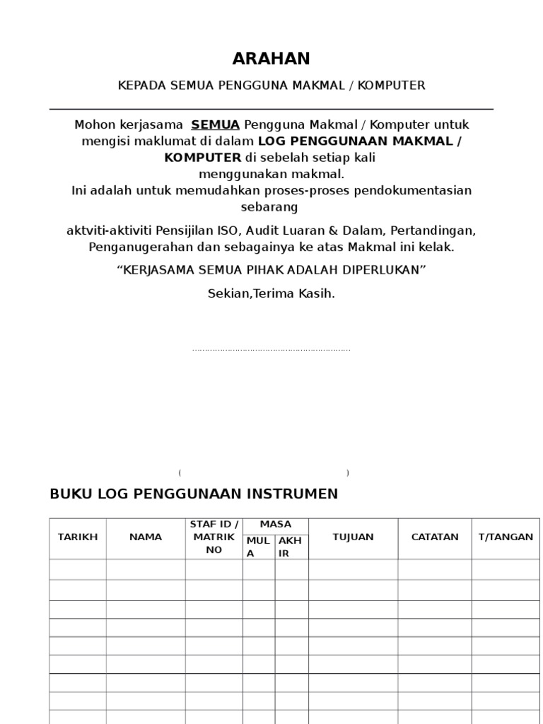 Buku Log Makmal Komputer Words Download Rekod Penggunaan Bilik Komputer Savesave Buku Log Penggunaan Makmal Komputer For Later Basuki Gunawan