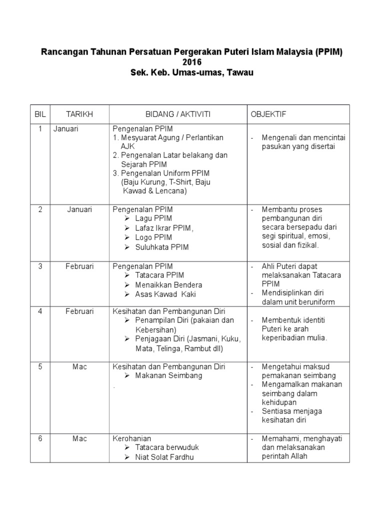Unit Kokurikulum Sk Tasik Damai Buku Log Ppim