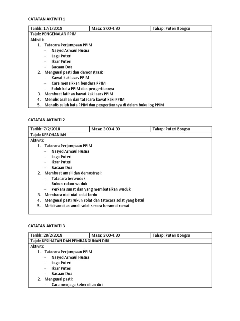 Laporan Aktiviti Mingguan Ppim