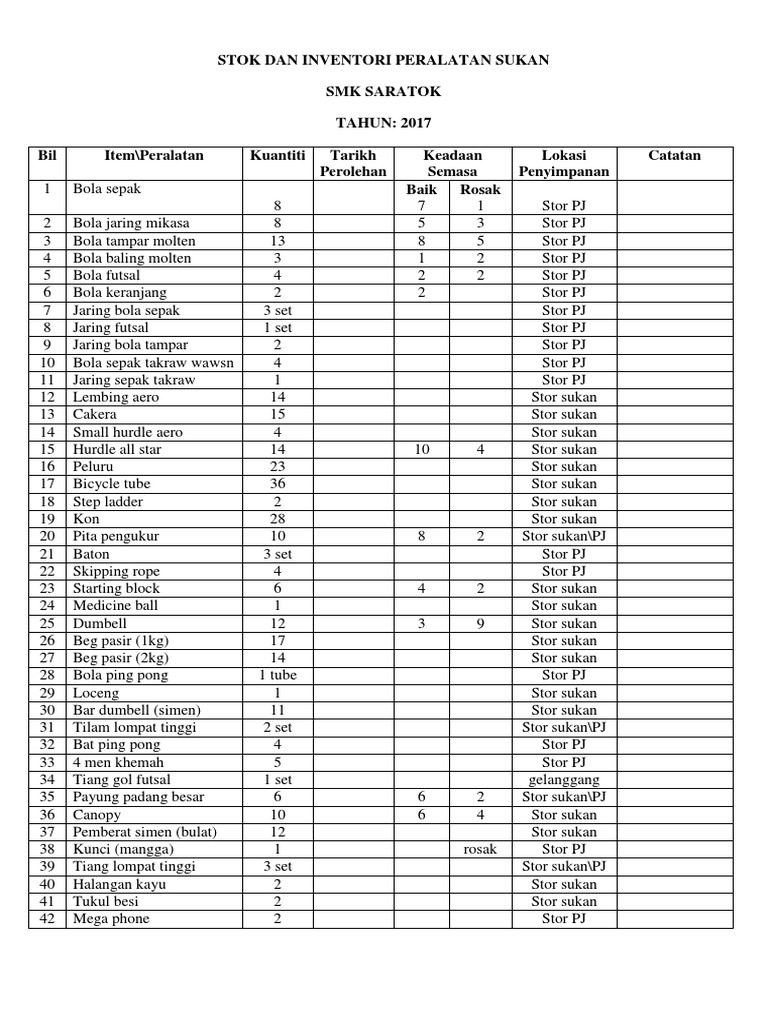 Rekod Barang Keluar Masuk Stok Sukan 2017 Docx