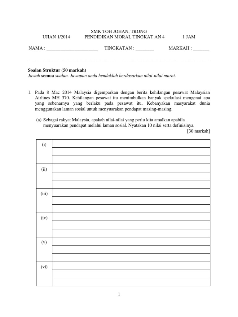 Ujian 1 2014 Pendidikan Moral Tingkatan 5